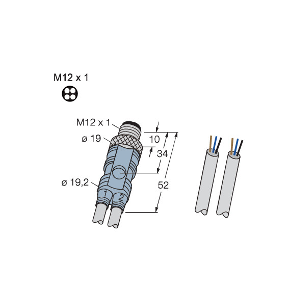 Y-Splitter with Cable M12,Male,4-pin,Straight Free outlet end : 3-pin Cable material:PVC Cable length:2m